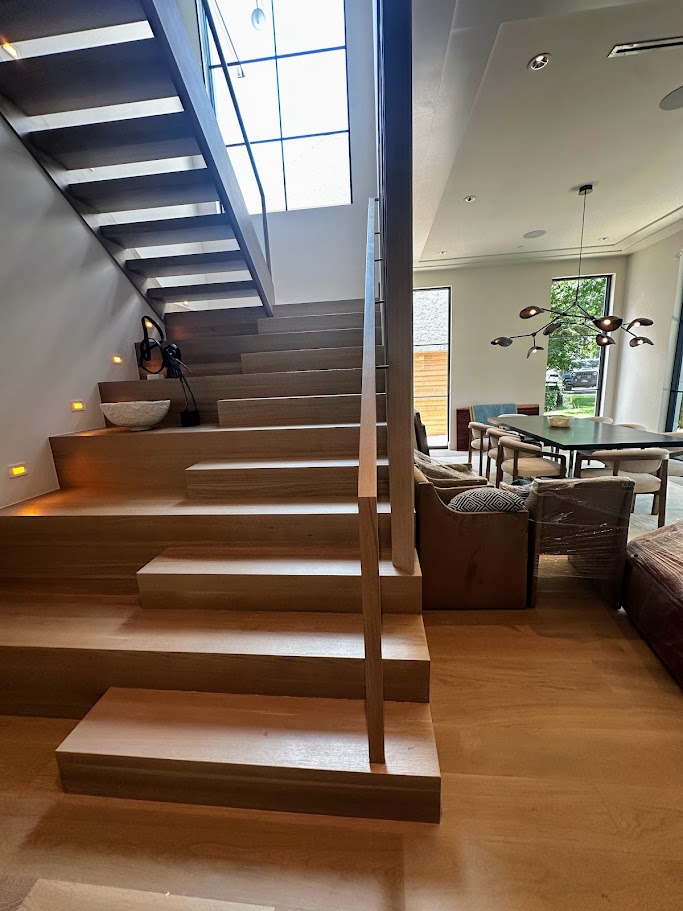 Trinity Stairs offers many contemporary stair designs, utilizing a variety of materials, such as glass, specialty metals and woods. The images below represent only a fraction of the contemporary options available. If you can imagine it, we can build it. By creatively and judiciously combining various styles and elements a uniquely pleasing stair can be achieved. So mix and match, pick and choose to your heart’s content. It’s your custom, contemporary stair, you decide.